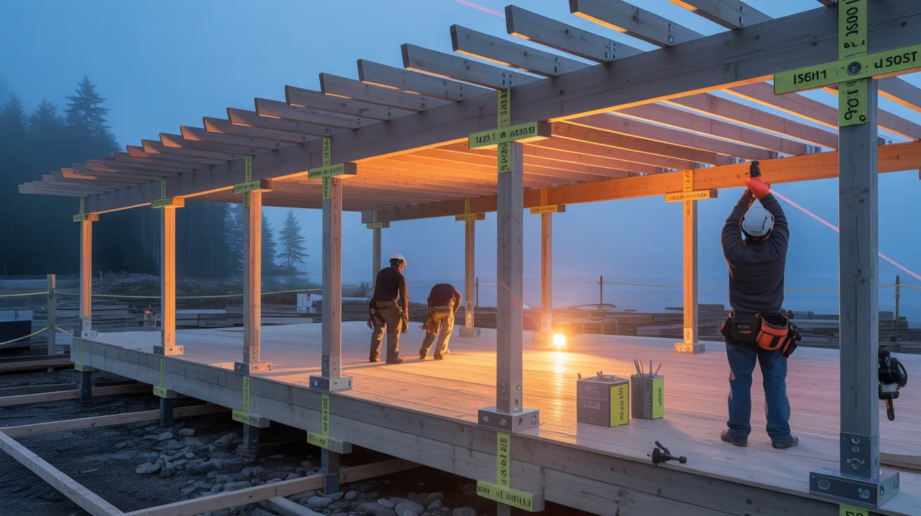 Create the frame with pressure-treated, structurally graded lumber chosen for coastal exposure and code-listed preservatives. You get rot resistant framing that satisfies CSA/O86 and NBC/BCBC requirements for wet-service use. Specify UC4B treatment for ground-contact elements and UC3B for elevated members. We use kiln-dried posts after treatment (KDAT) to limit shrinkage, increase fastener retention, and maintain plumb alignment. Specify No. 1 or better for beams and joists to obtain predictable span performance; verify design values with supplier mill stamps.